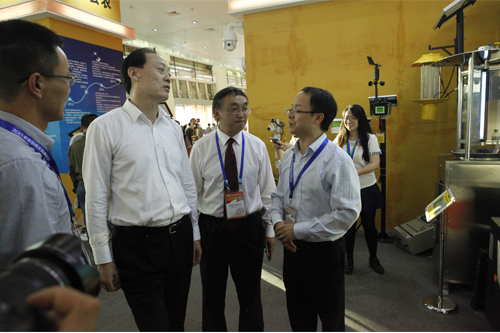 圖為:余欣榮副部長和王小兵副司長一行蒞臨托普展區(qū)