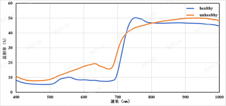 7.病蟲(chóng)害分析:可適用于植物病蟲(chóng)害試驗(yàn),進(jìn)行病斑部分和健康部分光譜反射曲線進(jìn)行對(duì)比,通過(guò)對(duì)變化趨勢(shì)的研究可以對(duì)病害發(fā)生部分和嚴(yán)重程度進(jìn)行分析;