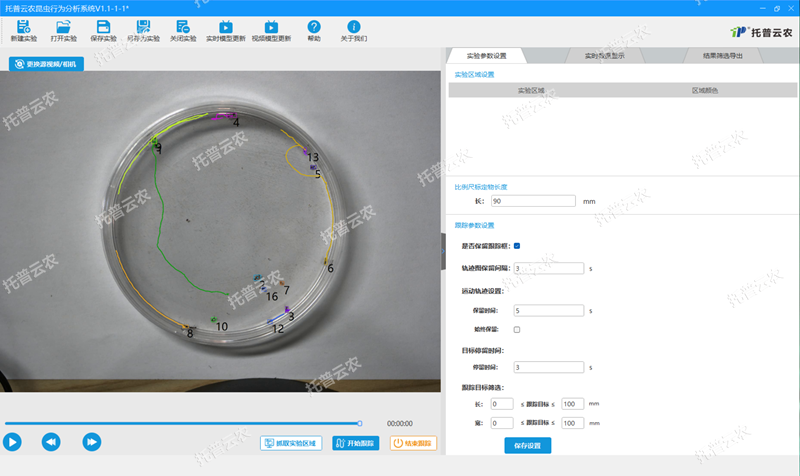 3.目標(biāo)跟蹤參數(shù)設(shè)置:用戶可根據(jù)需要,調(diào)整需要跟蹤的目標(biāo)昆蟲大小、停留時間等信息,提高跟蹤的精度。