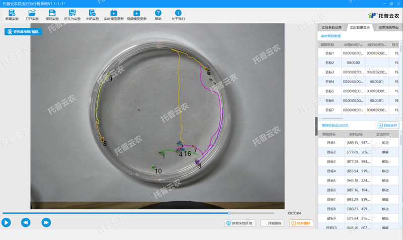 7.昆蟲運(yùn)動實(shí)時監(jiān)測:實(shí)時反饋目標(biāo)昆蟲運(yùn)動狀態(tài),并記錄位置變化。