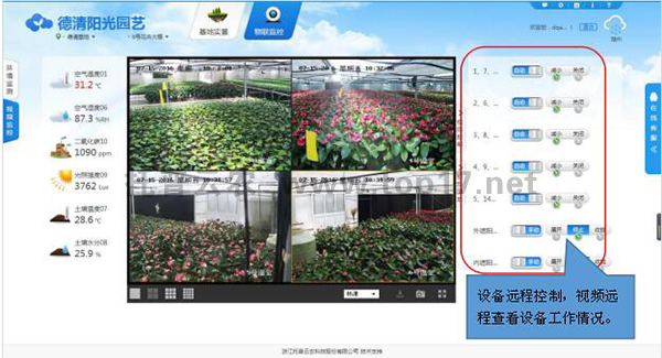 管理區(qū)域內(nèi)放置360°全方位紅外球形攝像機,可清晰直觀的實時查看種植區(qū)域作物生長情況、設(shè)備遠(yuǎn)程控制執(zhí)行情況、工人生產(chǎn)情況等。有了這個“千里眼”,管理人員可以做到遠(yuǎn)程輕松監(jiān)控、管理作業(yè)生產(chǎn)。