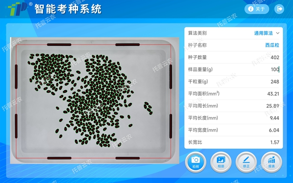 水稻考種系統(tǒng)適用于水稻種子考種分析,也適用于水稻、小麥、玉米、油菜、豆類、花生、芝麻、高粱等脫粒后的各種作物種子,可測(cè)量各種表面光滑的籽粒的數(shù)量、千/百粒重與平均粒型(包括長(zhǎng)、寬、長(zhǎng)寬比、周長(zhǎng)、面積)。