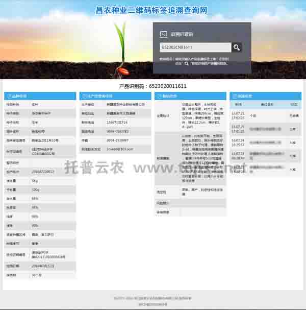 托普農(nóng)作物種子二維碼標(biāo)簽追溯系統(tǒng)web界面及手機(jī)APP:
