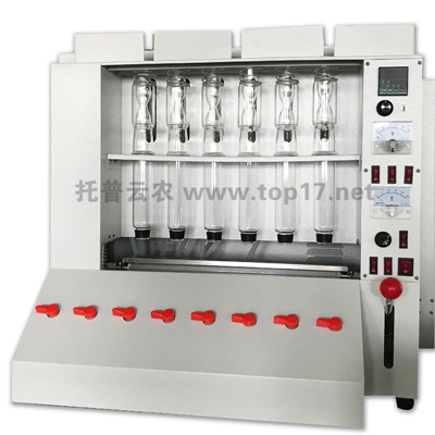 粗纖維測定儀是依據(jù)目前常用的酸堿消煮法消煮樣品,并進行重量測定來得到試樣的粗纖維含量的儀器�?蓽y量各種糧食、飼料、谷物、食品及其他農(nóng)副產(chǎn)品中粗纖維的含量,可同時測定6個樣品,自動控溫。